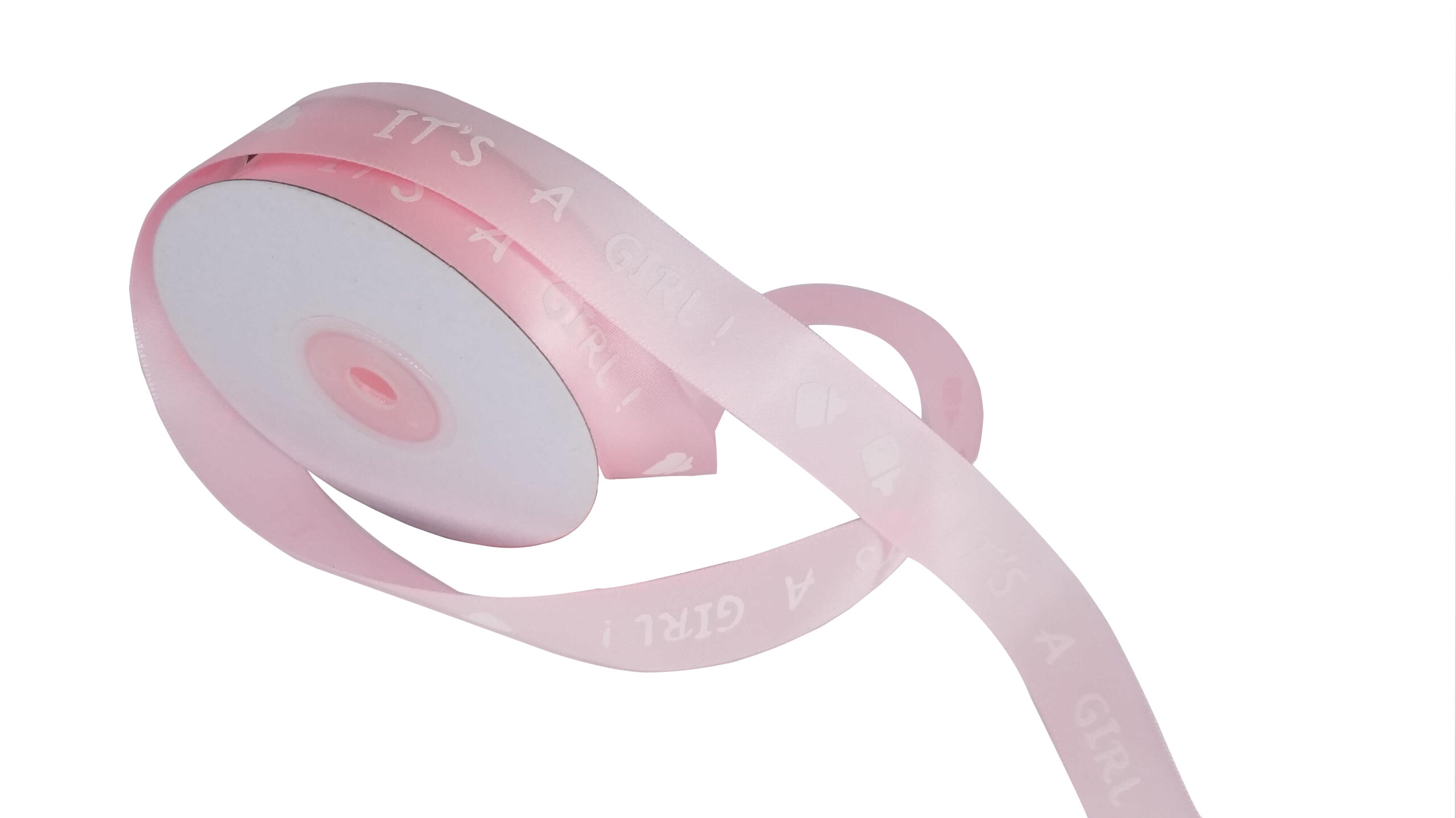 7/8″ 25 Yard Roll”It’s a Girl” Baby Shower Printed Satin Ribbon