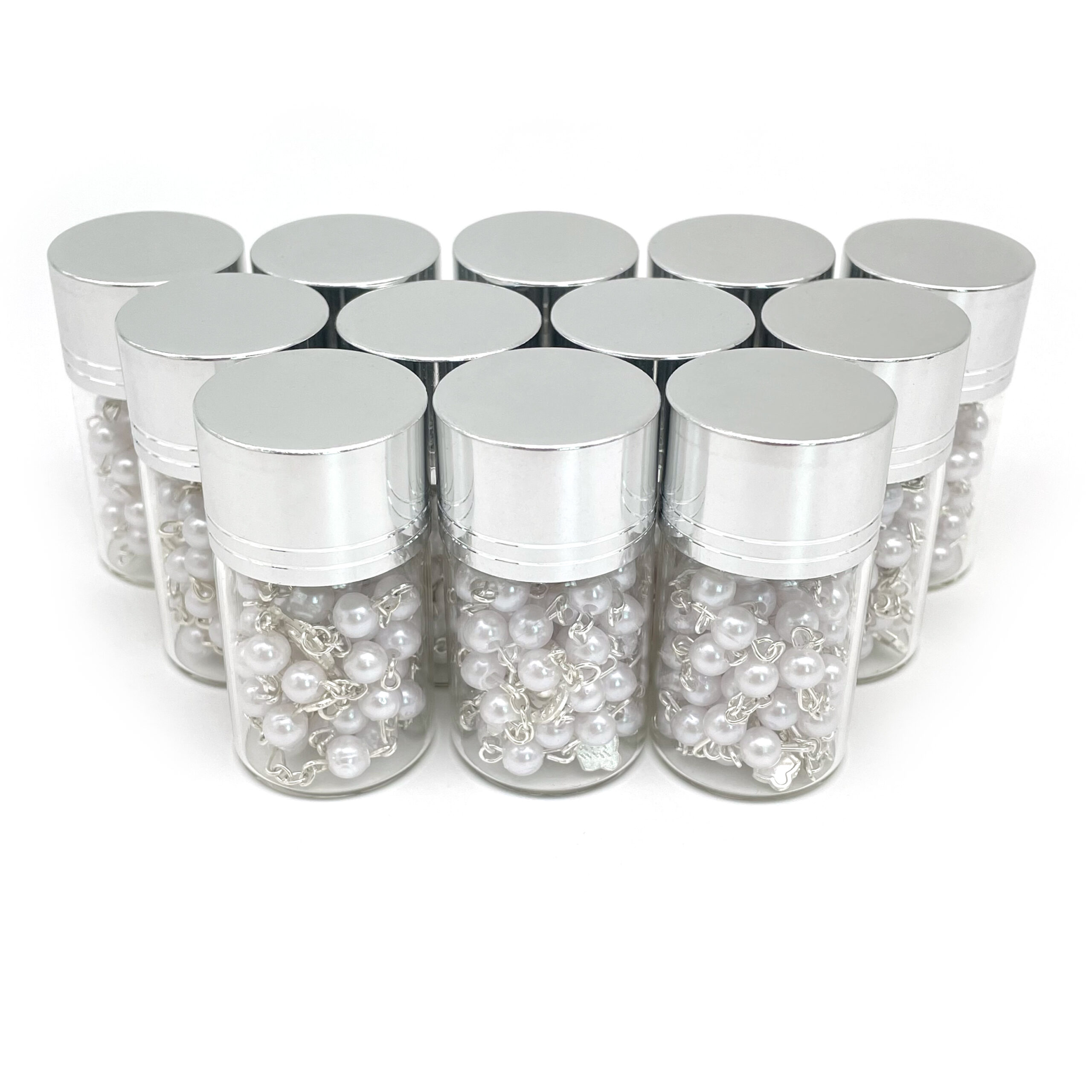 About Packing:The package includes 12 pieces of pearl beads rosary in individual glass Bottle with Shiny Silver bottle cap.