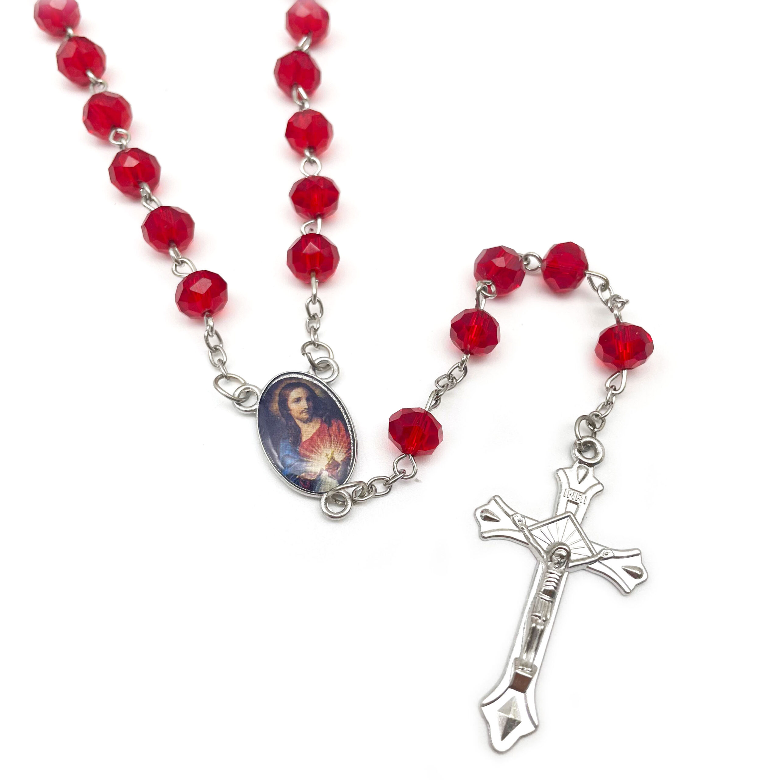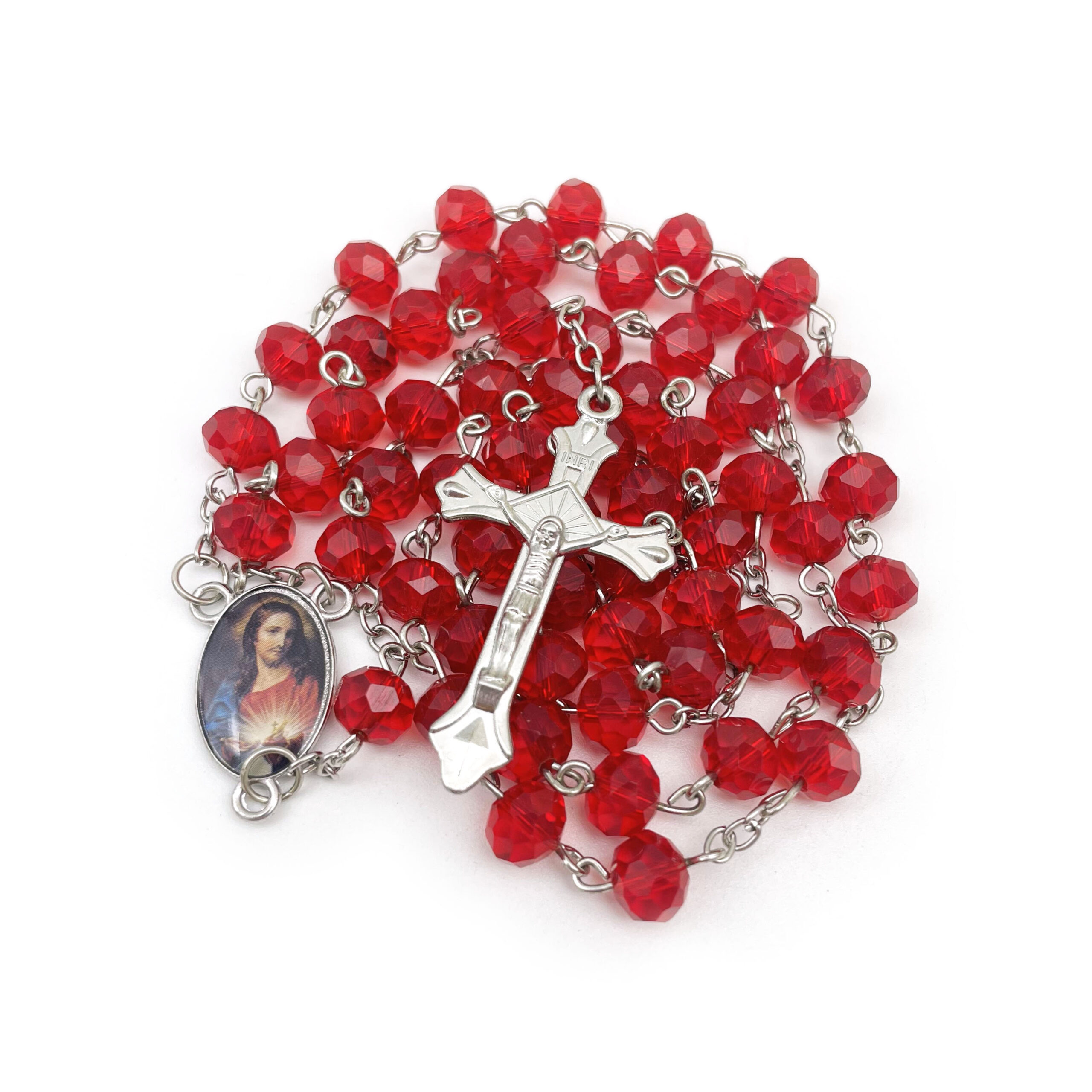 Be the first to review “Crystal Beads Catholic Rosary Crucifix Necklace (BG)