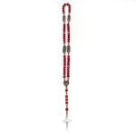 Crystal Beads Catholic Rosary Crucifix Necklace San Judas & Our Lady of Guadalupe Recuerdos de Bautizo Communion Religious Gifts (Red)