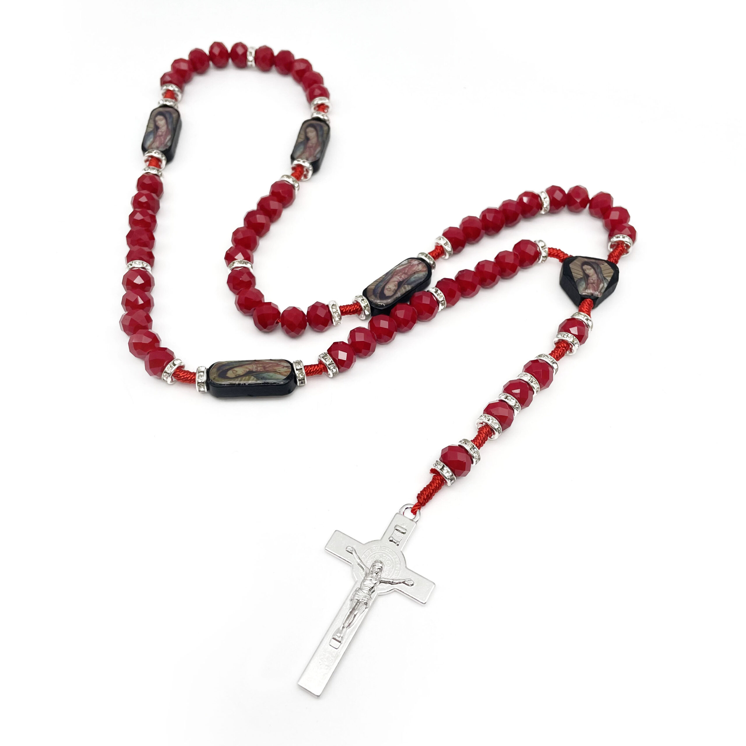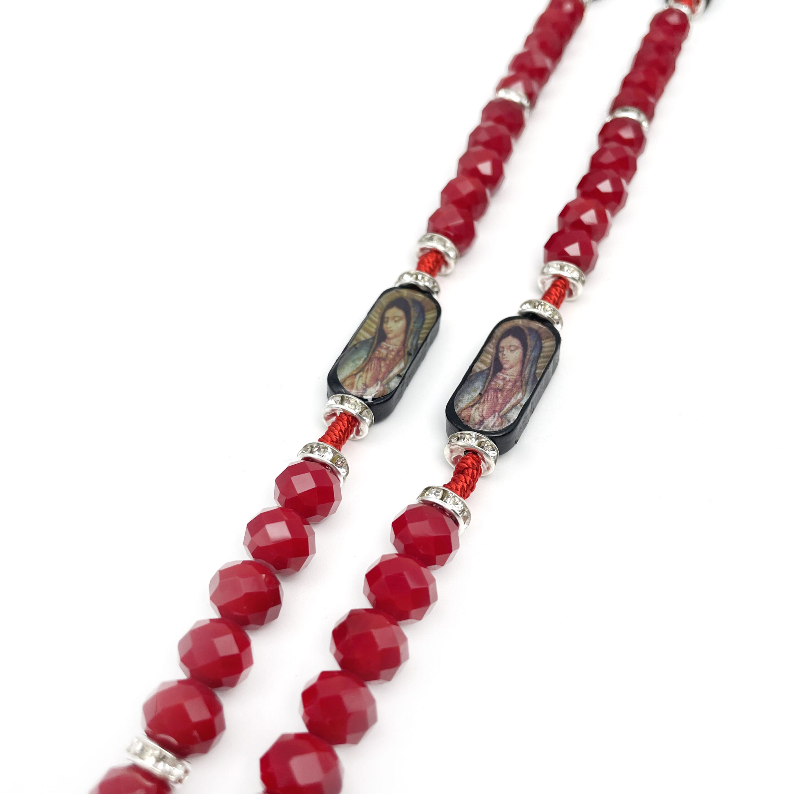 Crystal Beads Catholic Rosary Crucifix Necklace, Our Lady of Gudalupe (RD)