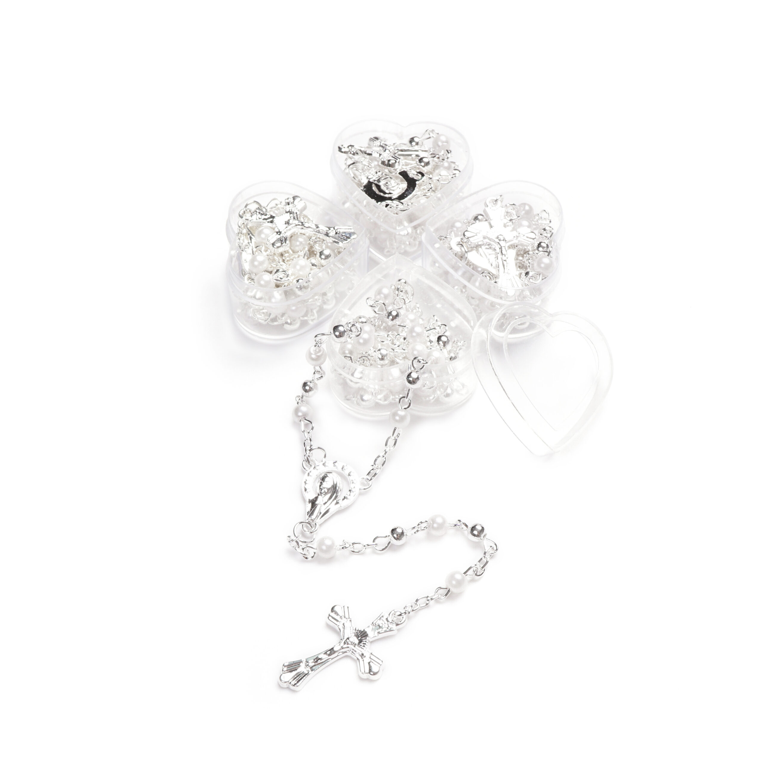 Each one comes in the beautiful Heart-shaped box with shining Beadas and Crucifix Cross.