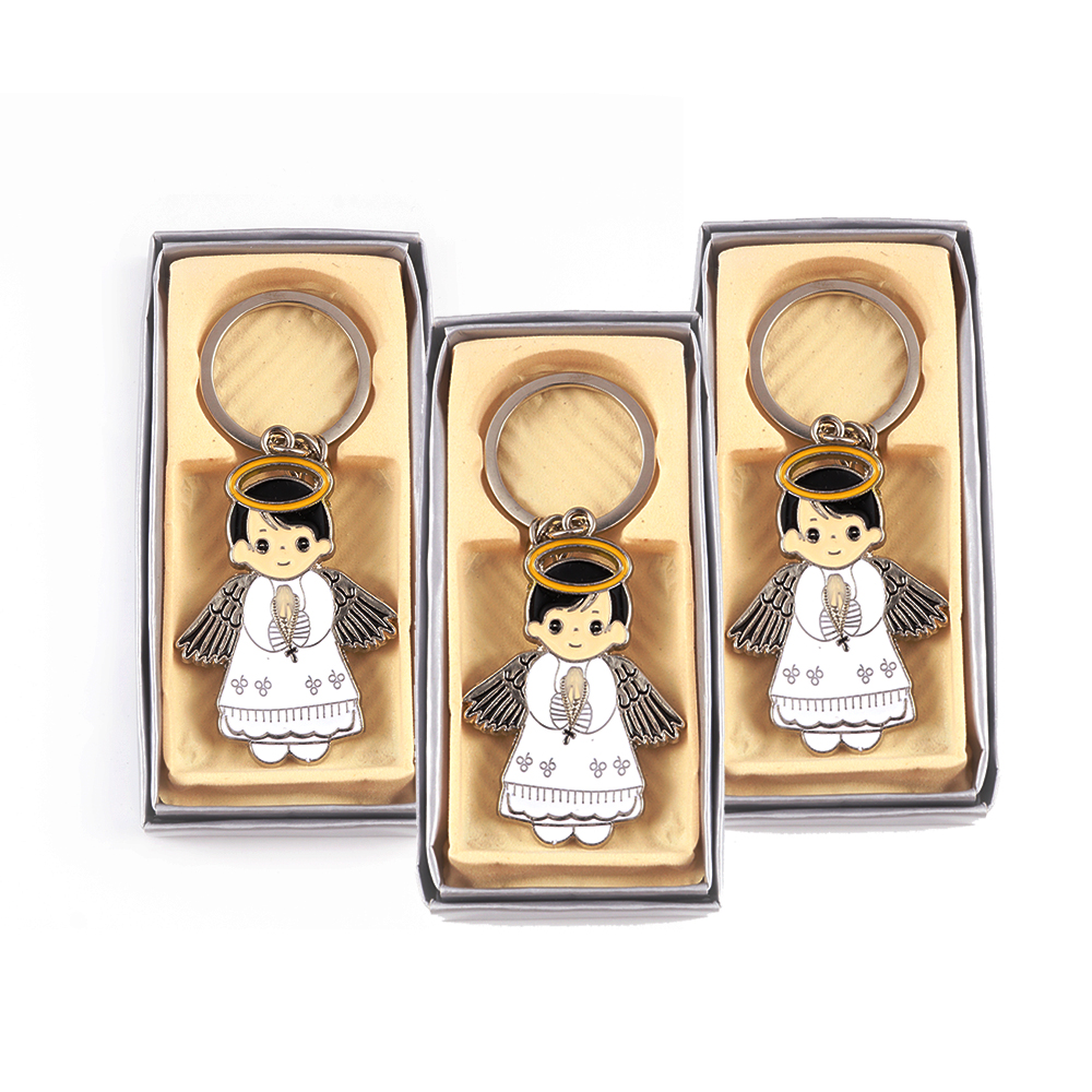 Boy Angel White Keychain Baptism First Communion Recuerdos de Bautizo Christening Favor