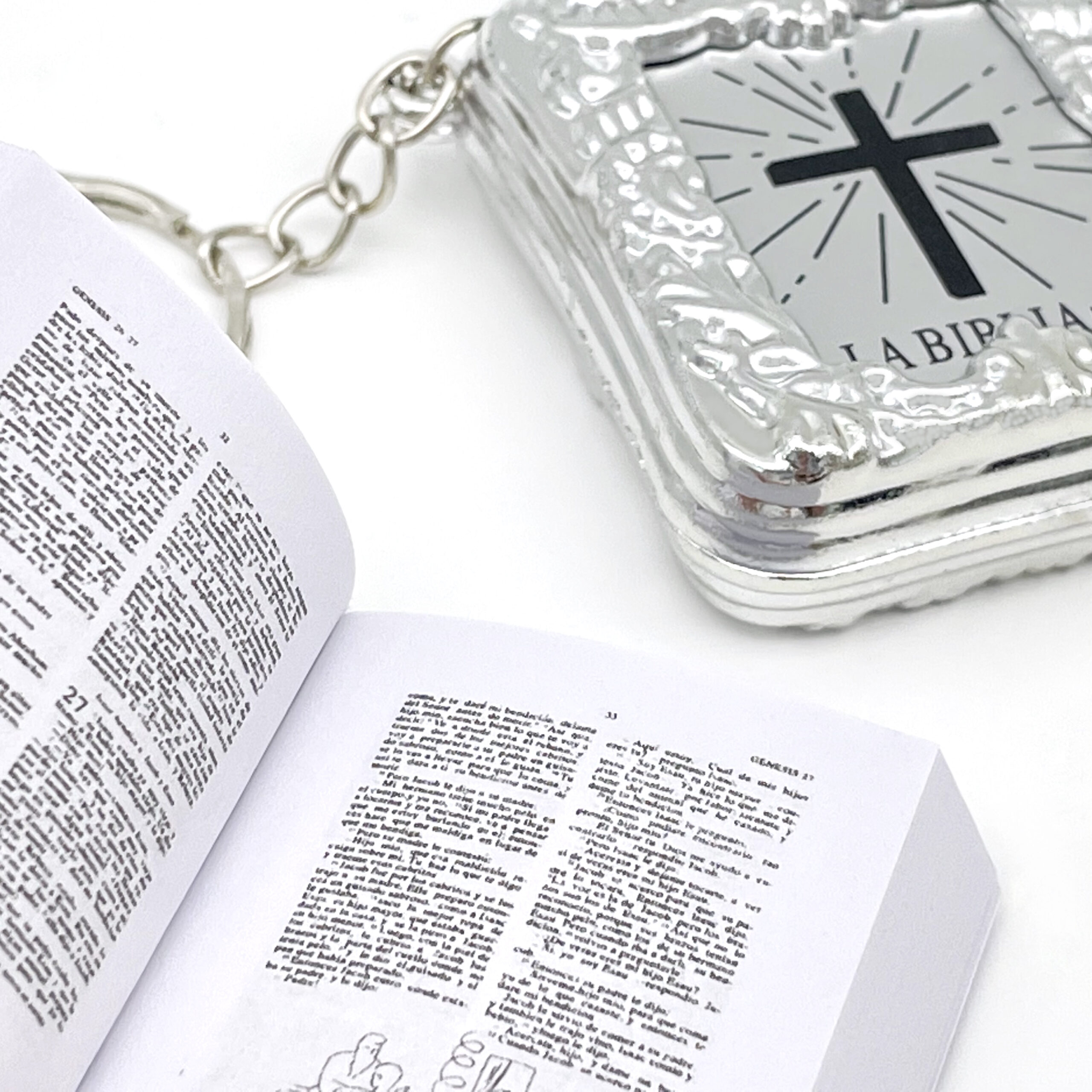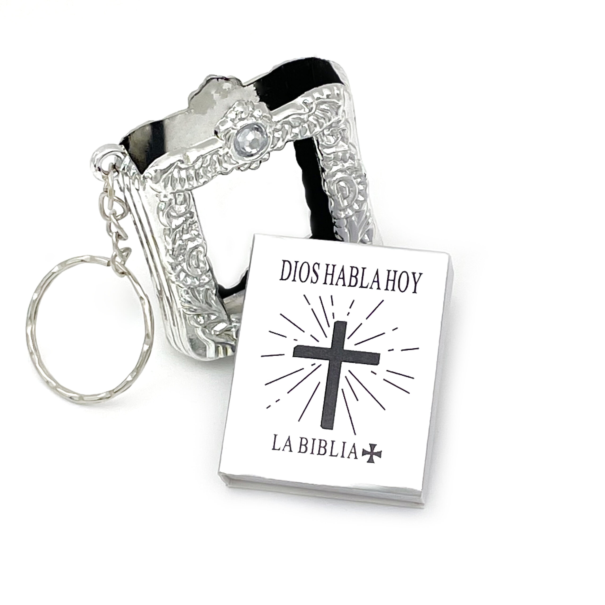 Mini Spanish Sliver Holy Bible keychains Religious Christian Jesus Cross