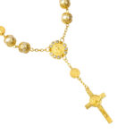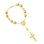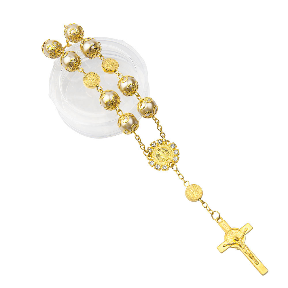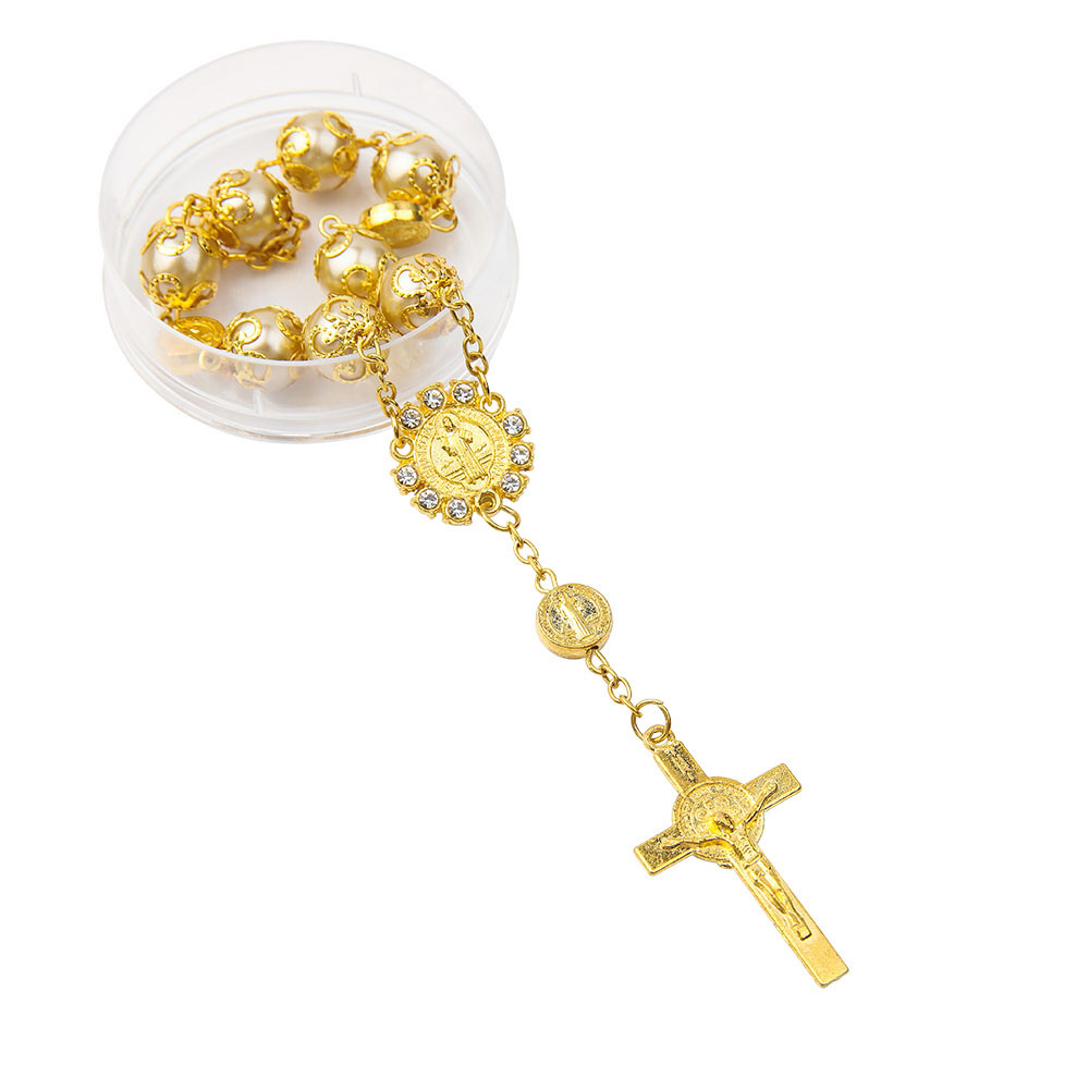 Champagne Gold Pearl Crystal Beads Bracelet Cross Recuerdos de Bautizo Communion Favors Religious Gifts