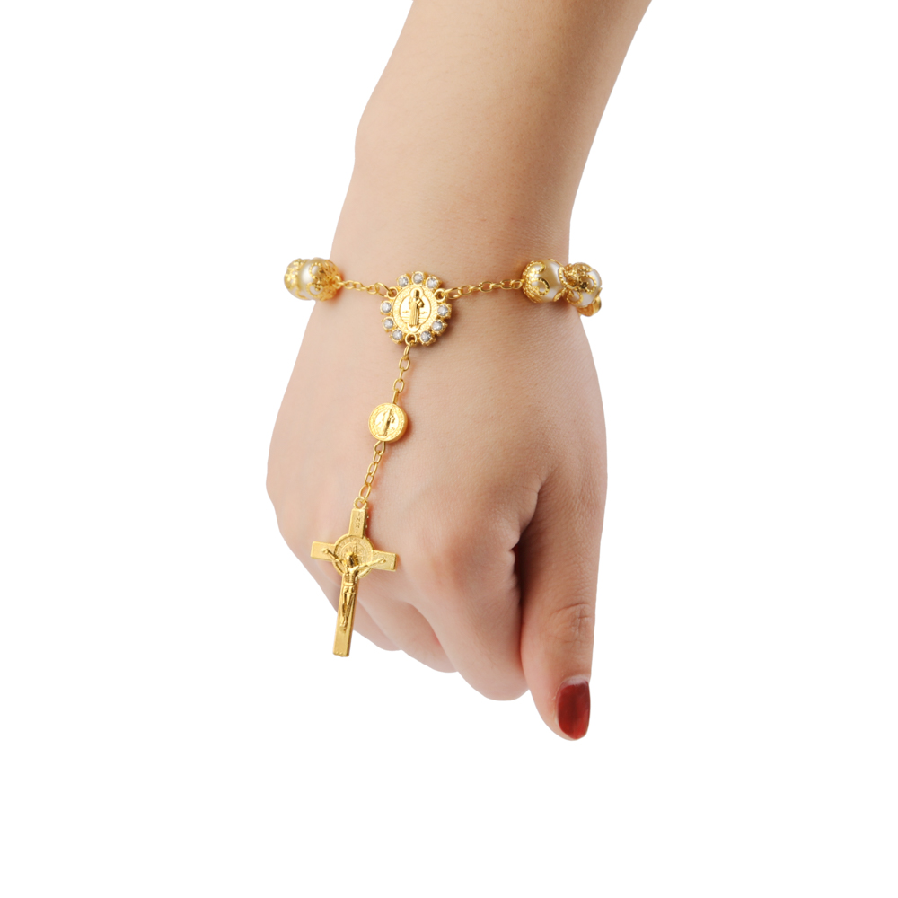 Saint Benedict Pearl Cross Bracelet (GDG)