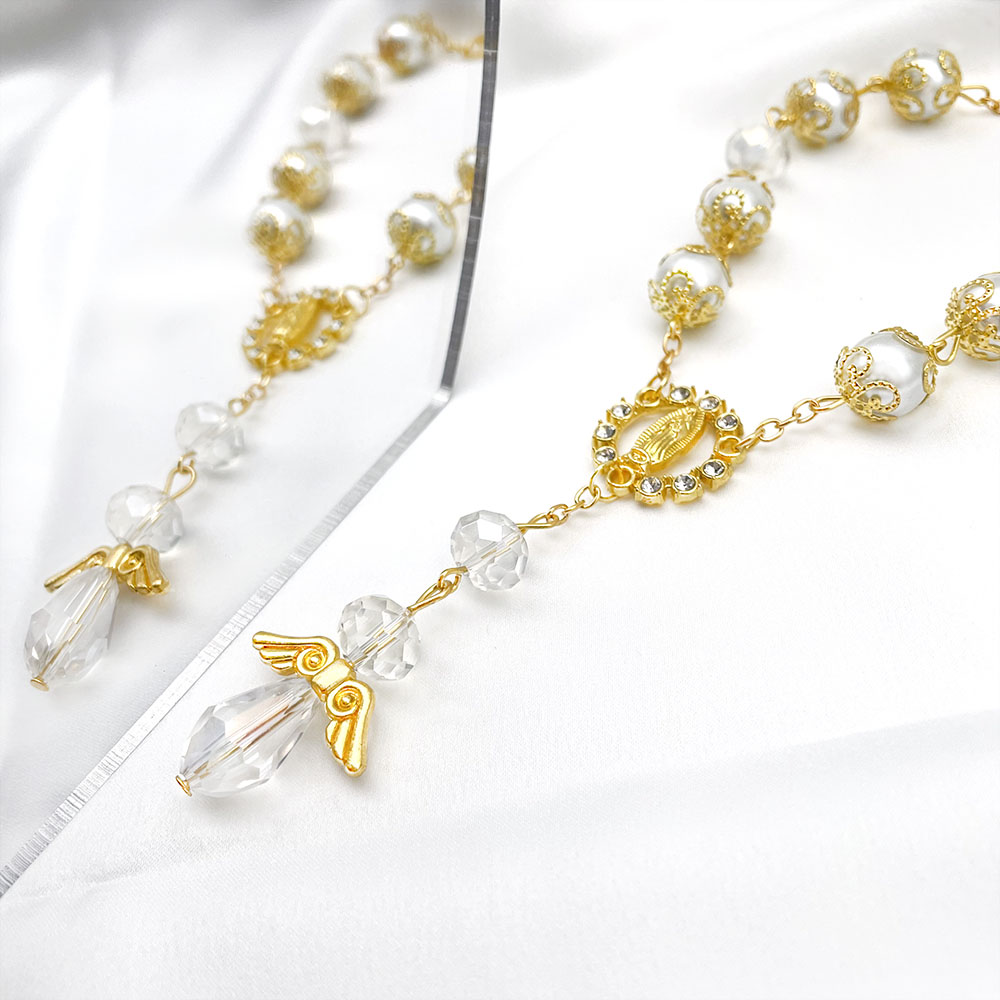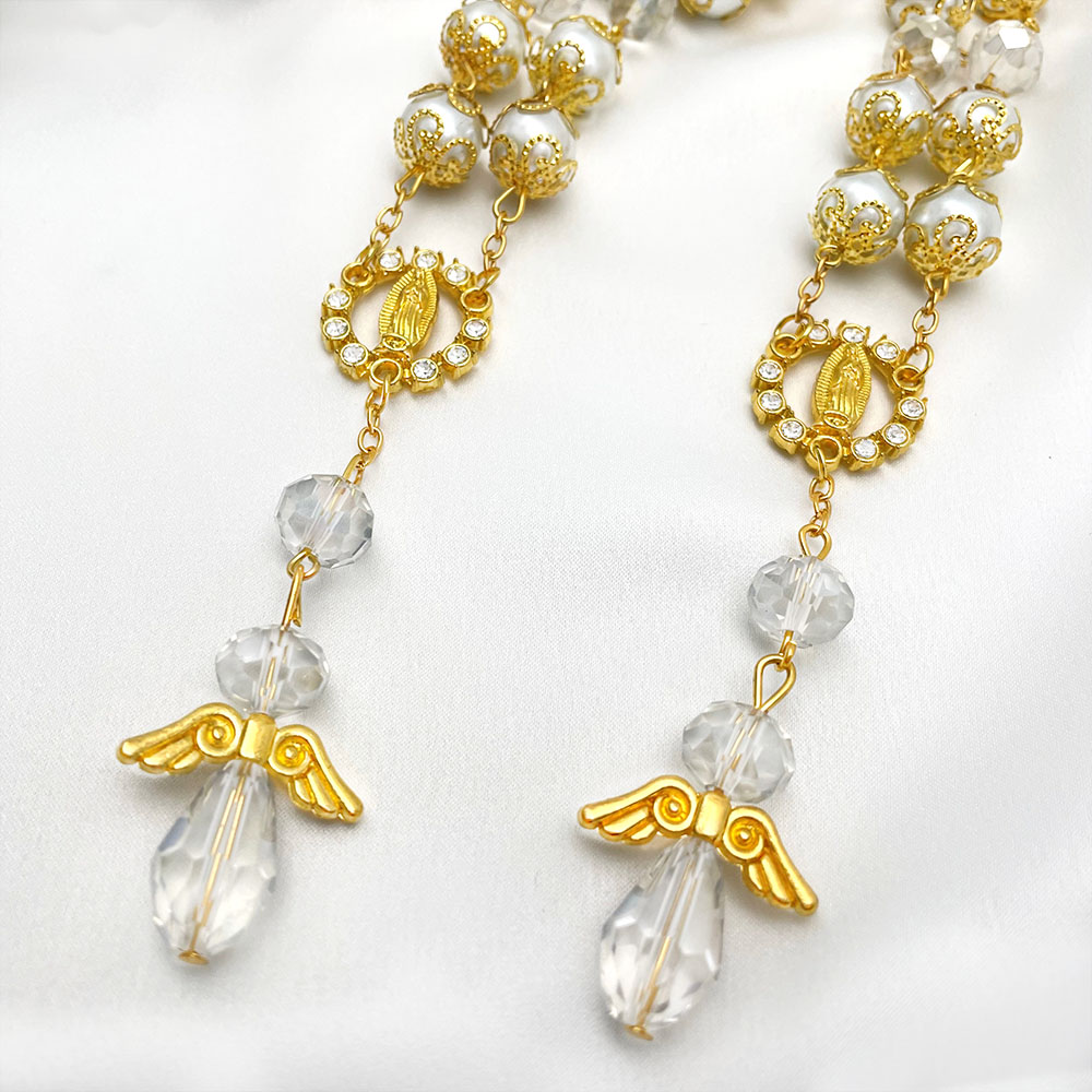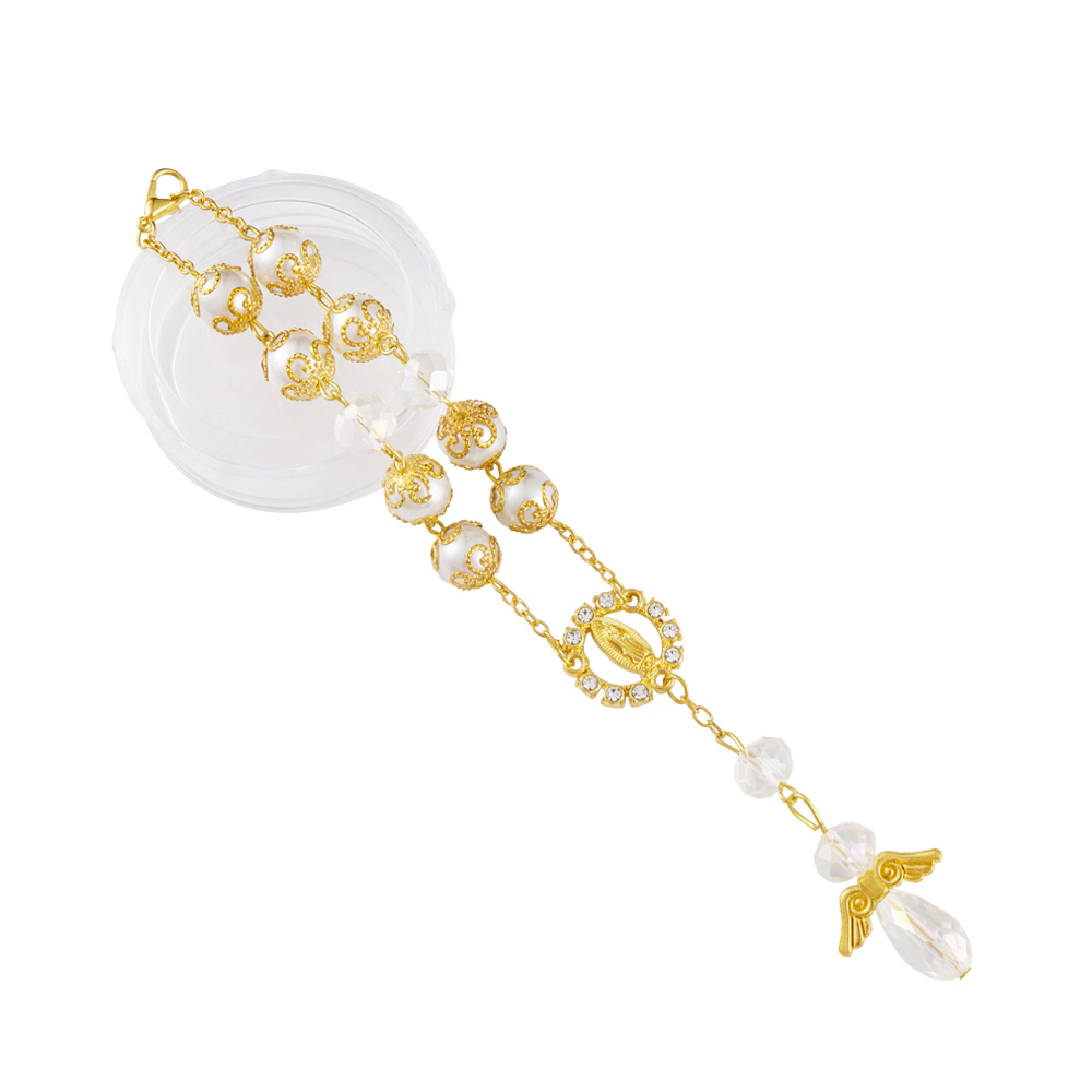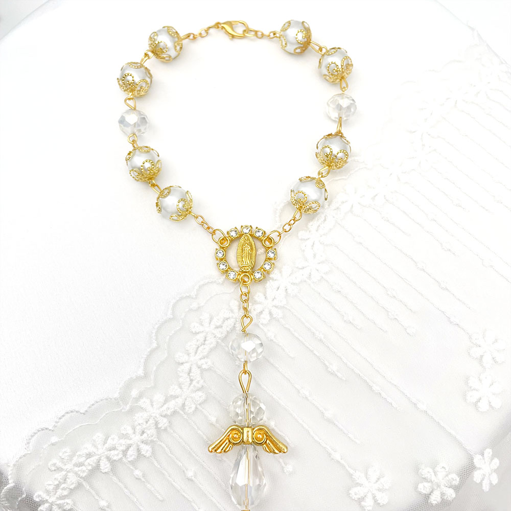 Pearl Bracelets Rosary for Girls Guadalupe With Charm Angel Catholic Baptism Christening Wedding Shower Birthday Party Favor