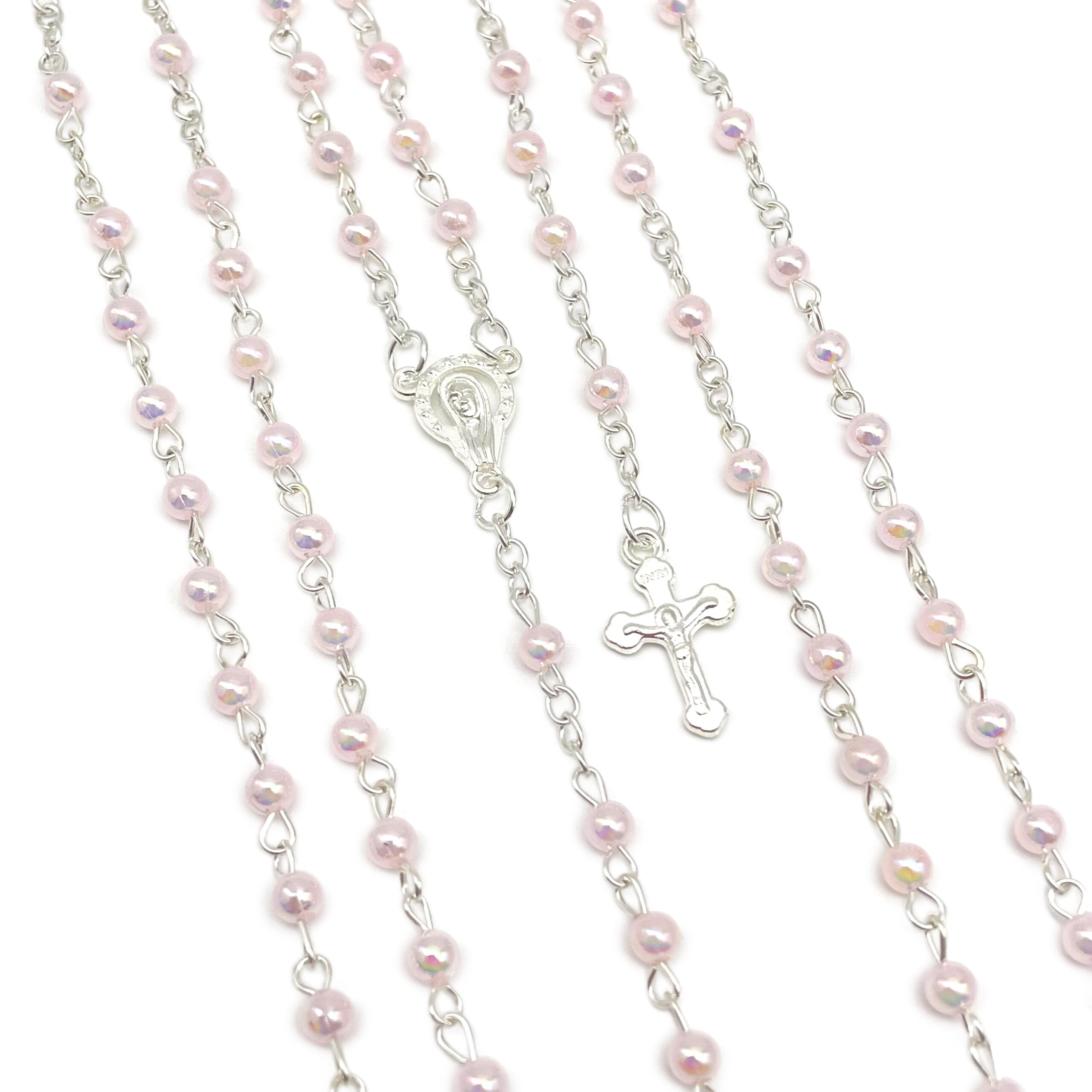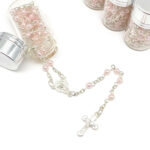 Baptism Our Lady of Guadalupe Clear Pearl Beads Rosaries In Glass Jar Bottle Recuerdos de Bautizo First Communion Sweet 15 Birthday Party Favor For Boy Girl (Pink)
