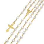 High quality Rosaries are made of faux pearl beads and Sliver plated chain.