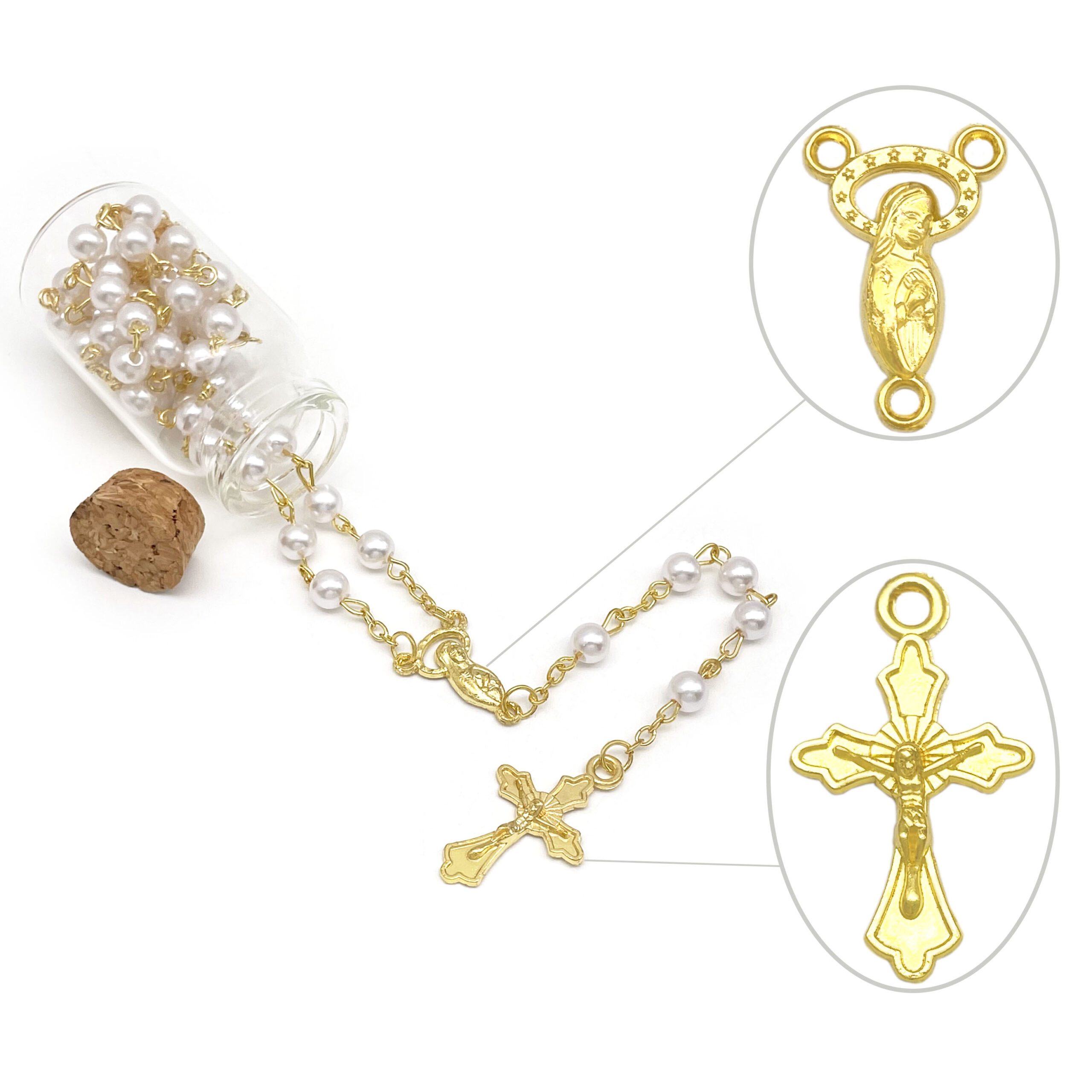 Baptism White Gold Pearl Rosary Bottle Recuerdos De Bautizo Baby Shower Favors Quiceanera /1st Communion