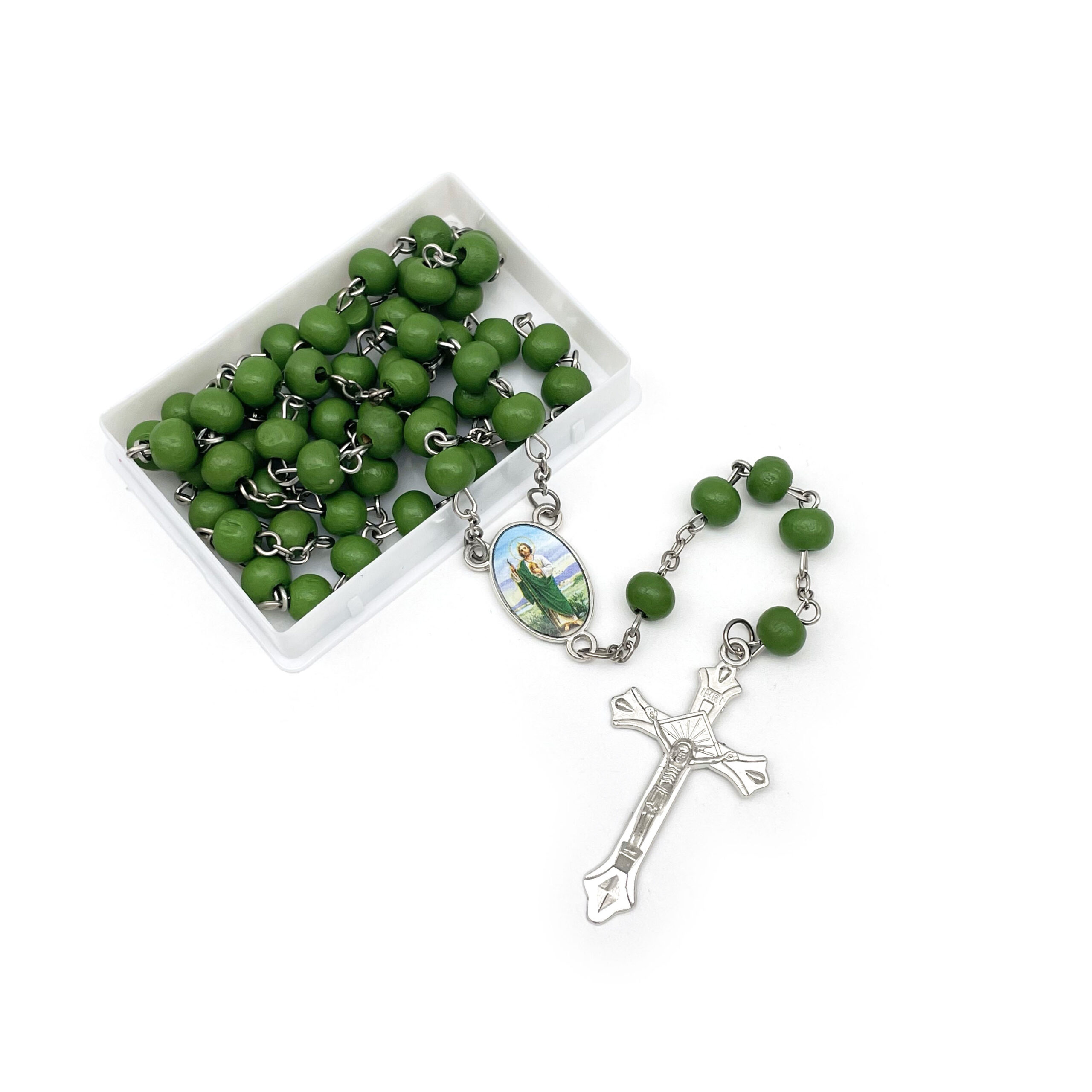 Be the first to review “Wooden bead Rosary San Judas (Green)
